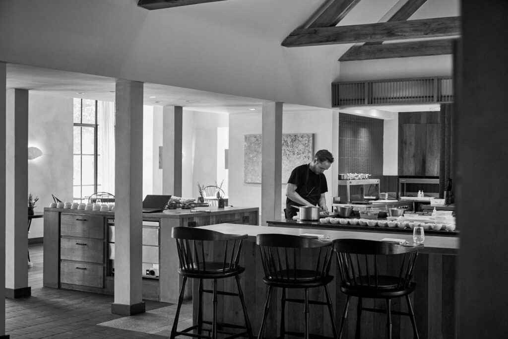 The experience starts with a tour of the on-site farm and gardens followed by time to relax in your bedroom’s lounge, where you can have a glimpse at the preparations being made in the open kitchen ahead of the multi-course extravaganza.