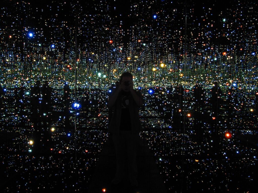 One of the museum’s main attractions is Yayoi Kusama’s “Infinity Mirrored Room,” an immersive installation that engages visitors with its endless reflections and bright colours.